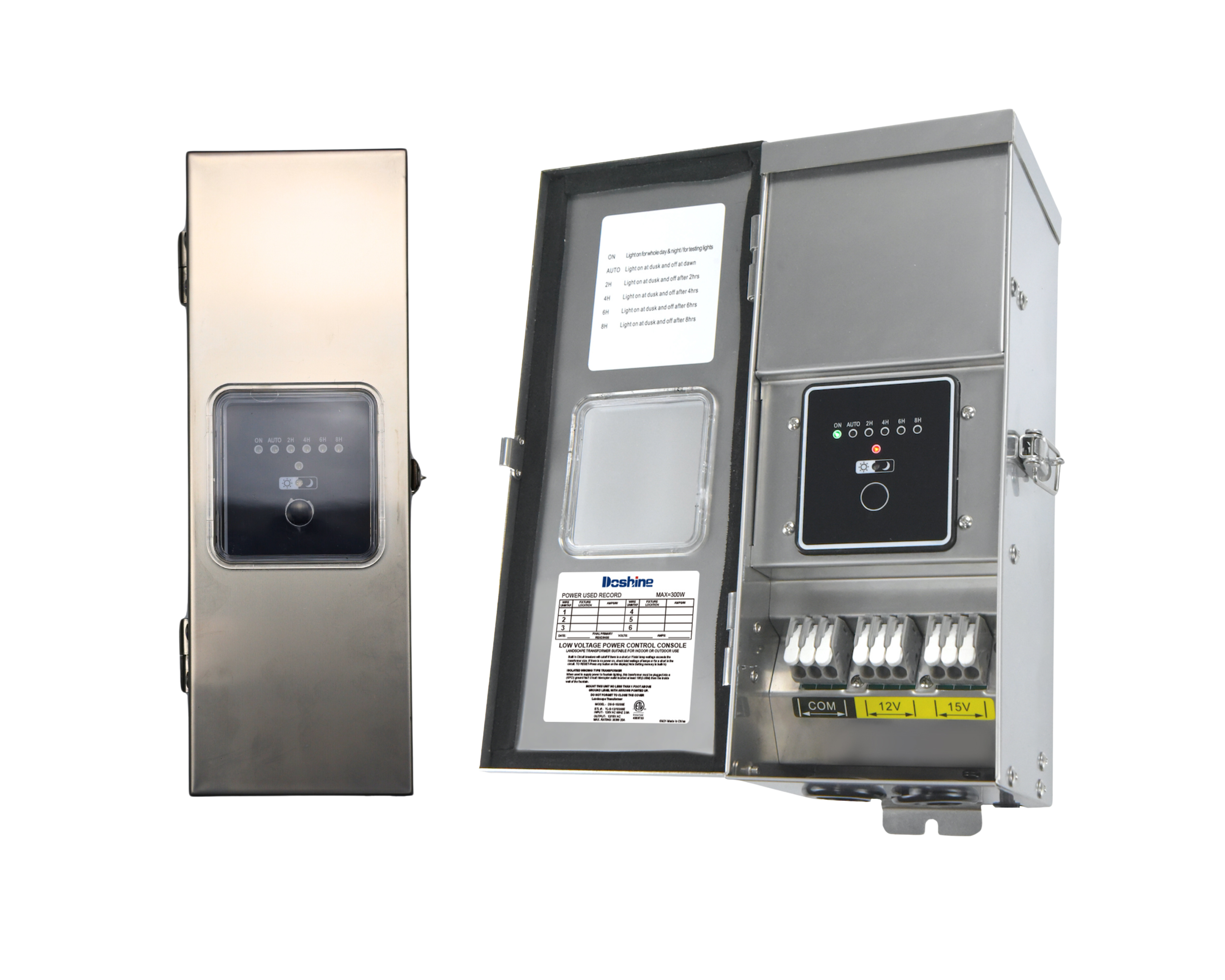 Designed for easy installation, consistent performance and longevity, Lumina Lighting® Transformers are the best on the market and the ideal choice for any low voltage outdoor lighting system. All Lumina Lighting® transformers are backed by our warranty and are ETL listed to UL standards. They each feature Toroidal cores, weatherproof stainless steel cabinets, timer and photocell receptacles and magnetic secondary circuit breakers for each 300W common circuit.