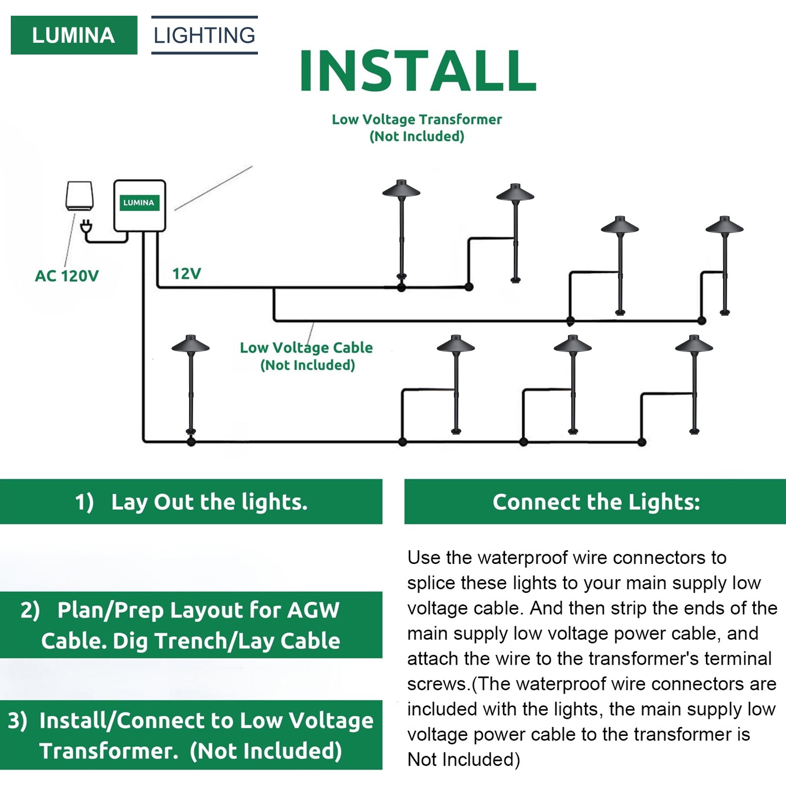 With Lumina Lighting® Enhance the Safety, Security and Beauty of Walkways, Gardens, Patios and other spaces. Our 12V Landscape lights must deliver the right amount (and quality) of illumination. Our professional-grade landscape lights are tested first in the Lumina Lighting® Innovation Lab to make sure they deliver light with the correct properties, then are tested again in the field. Then we stand behind them with the landscape lighting industry's best warranties.